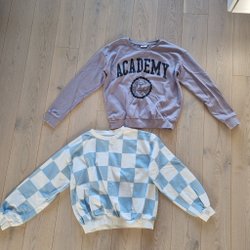 OBS. Den ena tröjan ser svart ut på bilden, men den är mörkblå. Den andra är ljusbeige.