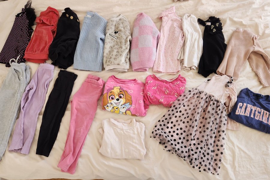 Klädpaket I strl 104. Vissa plagg är 98/104 men är mer ren som 104 och något plagg är 110 men litet som 104.