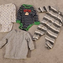 Strl 98. I fint använt skick. 2 st Tjocktröjor, en långärmad tröja. 11 par byxor.
