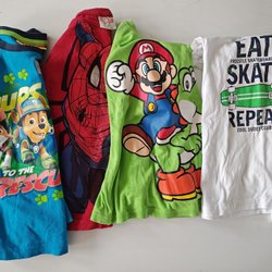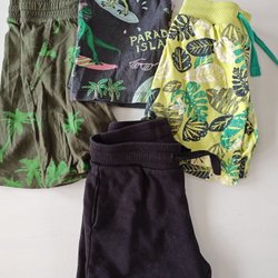 Ett par gråa mjukisbyxor med tryck av arbetsfordon och trafikkoner. Ett par marinblå finbyxor från Hampton Republic. Strl 98 och 104