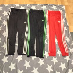 Ett paket med olika byxor i varierande stilar och färger. Inkluderar mönstrade byxor, enfärgade byxor.