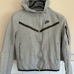 Ett set från Nike Tech som består av en huvtröja och matchande byxor. Huvtröjan har en hel dragkedja framtill, huva och en ficka med dragkedja på vänster ärm. Byxorna har en elastisk midja med dragsko och fickor.