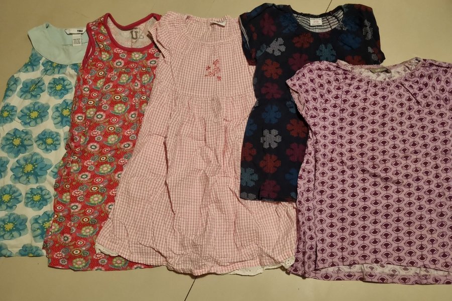 Paket med tre klänningar och två tunikor, str 110-116