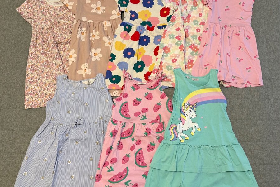 8 st klänningar i storlek ca 110-116. Samtliga klänningar i mycket fint begagnat skick.