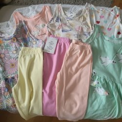Allt är fint skick! Jag såg nån fläck på t-shirten med enhörning. Kan säkert gå bort med vanish eller något liknande.