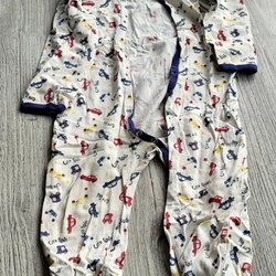 Vit baby pyjamas med en söt broderad nallebjörn och texten "friends together" på bröstet. Pyjamasen har tryckknappar framtill och fotade ben. Mycket fint skick! Storlek 3-6 månader