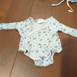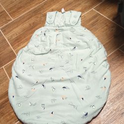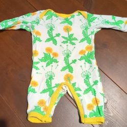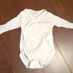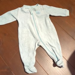 Vit baby pyjamas med tryck av träd och igelkottar. Pyjamasen har fötter och knäpps med tryckknappar.