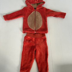 Ett set med två babyplagg. En pyjamas med fötter, prydd med ett kattmönster i svart och vitt, samt detaljer i rosa. Står storlek 9 månader, men använd som 62. Den andra är en pyjamas med långa ärmar, dekorerad med ett molnmönster i ljusblått där benen blir mysigt inne i påsen. Knappar nertill för lätt blöjbyte (storlek 62-68).