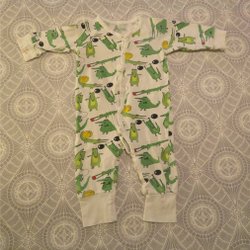 Vit baby pyjamas med ett sött mönster av får som sover på moln, månar och stjärnor. Pyjamasen har knappar framtill. Tjockare kvalitet så den är perfekt nu när det blir kallare.