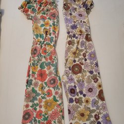 Parti med pyjamasar i olika färger och mönster. Innehåller pyjamasar med enhörningsmotiv, regnbågsfärger, kaninmotiv och blommigt mönster. Alla pyjamasar består av en långärmad tröja och matchande byxor.