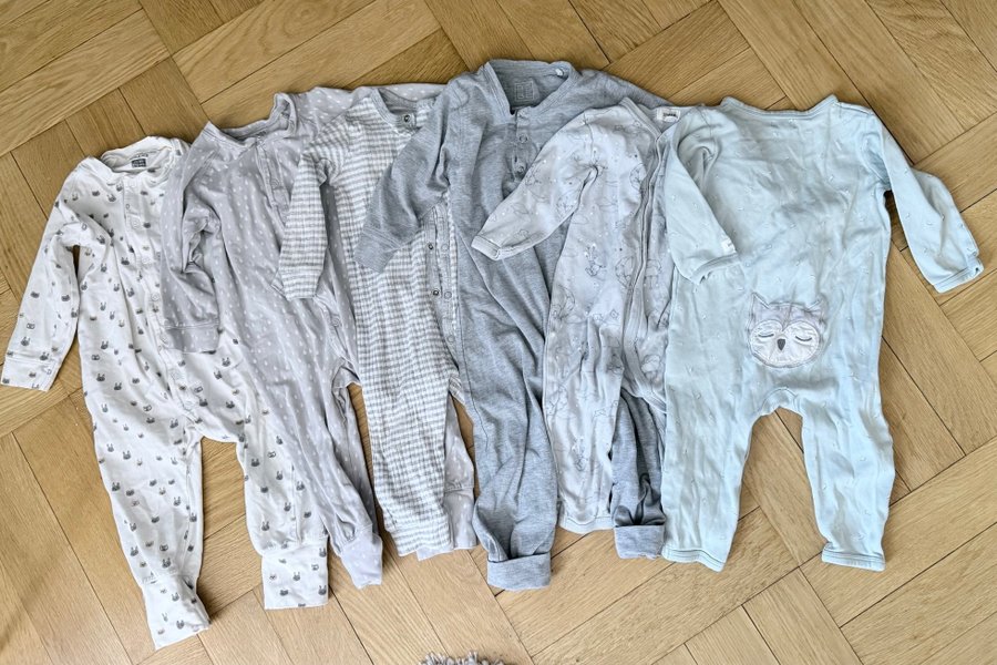 6 pyjamas som var mycket älskade. Varierar mellan 74, 74-80 och 80.