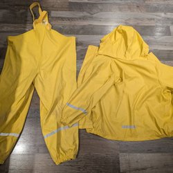 - Praktiska regnkläder som håller barnen torra under skurar.