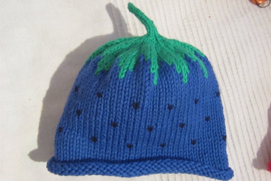 NY GULLIG HEMSTICKAD BLÅBÄRSMÖSSA TILL BABY.