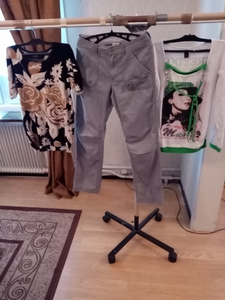 1par ljusgrå byxor stl 158 plus 1st t-shirt och 1st tröja med fina motiv, fina kläder