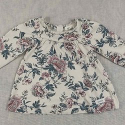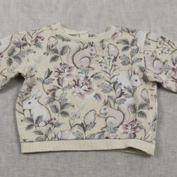 Newbie, Strl 86, Långärmad tröja, Ljusbeige, Motiv på blommor