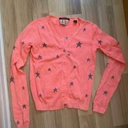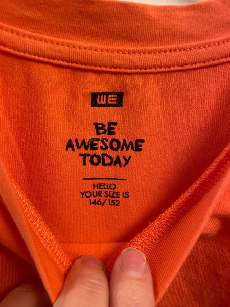 En orange/korall tröja med texten ”MAKE YOUR MOVE” från WE inköpt i USA.