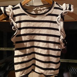 Söt gul Topp med blommigt mönster och volangdetaljer vid halsringningen och ärmarna,Lindex st 104.
