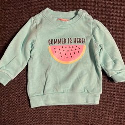 Tröja med dragkedja i storlek 12 månader, bör motsvara ca storlek 74. Fina stjärnor på ärmarna.
