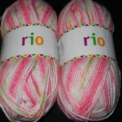 Blå stickad tröja med ballongmotiv i lila, blått och gult. Tröjan har ribbstickning vid halsringningen, ärmslut och nederkant. Stickad i mjukt blandgarn