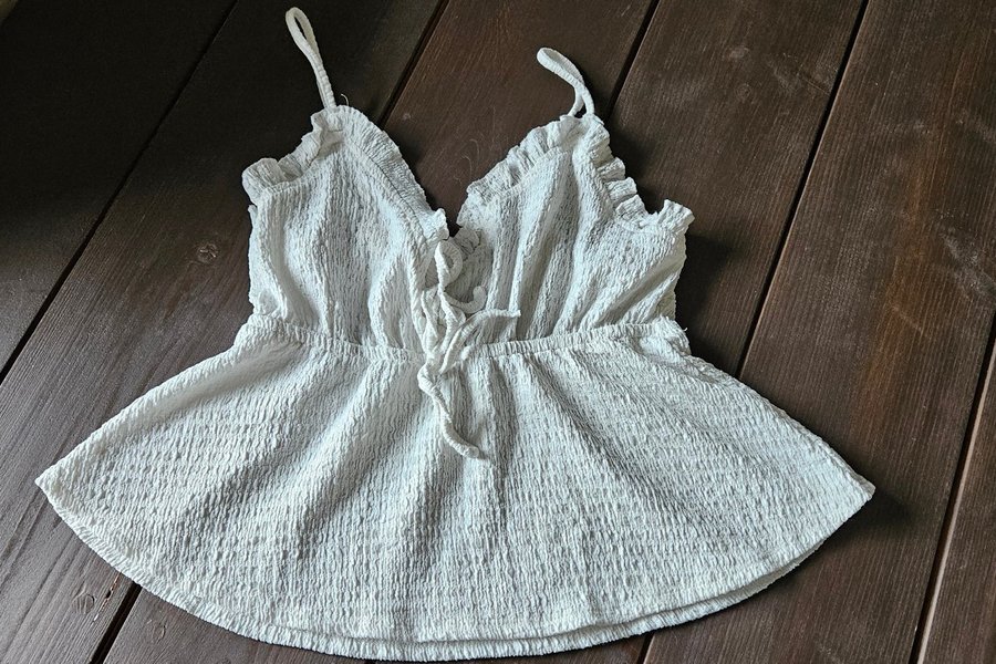 Vit sommartopp med smala axelband som är justerbara. Toppen har en smickrande passform med resår under bysten.