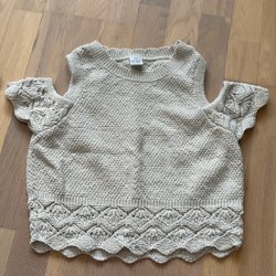 Tröja med långa ärmar och rund hals. Tröjan har ett genombrutet stickat mönster över hela plagget, vilket ger en luftig och texturerad känsla. Muddar finns vid ärmslut och nederkant.