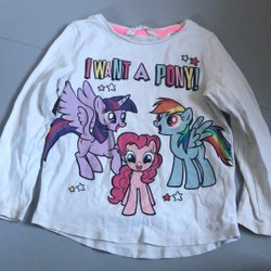 Vit långärmad tröja med ett tryck av en flicka med blommor och en kanin. Tröjan har små prickar över hela tyget och en volangdetalj runt halsringningen.