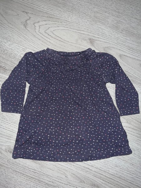 Långärmad tröja med stjärnmönster över hela plagget. Halsen har en smockad detalj som ger en fin struktur. Ärmarna är långa och avslutas med en enkel mudd. Nederkanten är rakt skuren.