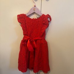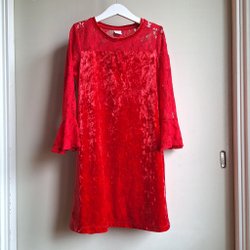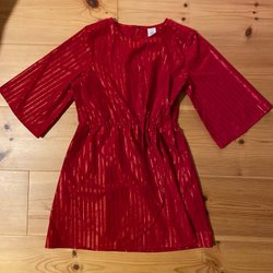 Varumärke & beskrivning: Underbar söt jul - festklänning i storlek 104 från Lindex- i storlek 62. Perfekt till kalas och högtider. Längst ner i kanten finns en spets och i tyget finns strukturer av hjärtan i lite ljusare ton. Det finne även en söt rosett till höger vid hals. Så skön i plyschaktigt tyg. Perfekt till Jul. Sätt bara på en tomteluva som blir lilla babyn en tomtegumma.