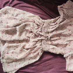 Söt klänning från H&M i storlek 128. Klänningen har ett färgglatt mönster med fjärilar och blommor. Den har en dekorativ kant runt halsen och ärmarna.