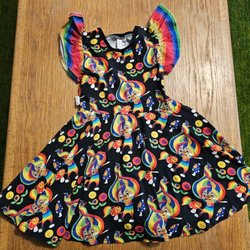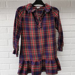 Söt klänning med blommigt mönster. Klänningen har en krage och knappar framtill. Den har korta ärmar och en utsvängd kjol.