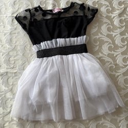 Vit klänning med kort ärm och en söt nallebjörn dekorerad med paljetter på framsidan. Klänningen har en dragsko i midjan.