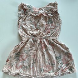 Rosa klänning med långa, puffiga ärmar och en dekorativ rosett baktill Klänningen har en fyrkantig halsringning med volanger.9-10 år ca