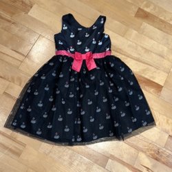 Söt svart klänning med tyllkjol och volangdetaljer vid axlarna. Klänningen har en fyrkantig halsringning och knäpps med knappar i ryggen.