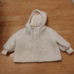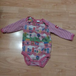 Söt kläning med lång ärm och ett blommigt mönster i olika färger som gult, orange, blått och brunt. Blusen har en dragkedja baktill.