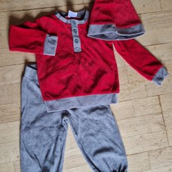 Två söta juliga klänningar. Den ena är röd med ett klassiskt rutmönster och ett dekorativt bälte. Den andra klänningen har ett färgglatt rutmönster i rött, blått, grönt och vitt, med dekorativa detaljer på axlarna (den står det ingen storlek på men uppskattas vara kring stl 98-104). Båda ska bäras med en blus eller topp under.