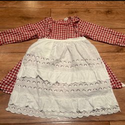 Röd stickad klänning med långa ärmar och prickigt mönster. Klänningen har en rund halsringning och en utställd kjol.