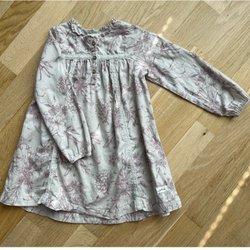 Söt klänning med lång ärm och ett blommigt mönster.