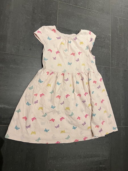 Söt klänning från H&M med fjärilar i olika färger. Klänningen har korta ärmar och en utställd kjol