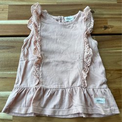 Rosa klänning med hängslen och två fickor framtill med kattansikten.