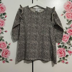 En söt klänning med långa ärmar och ett brunt leopardmönster. Klänningen har en smickrande passform.