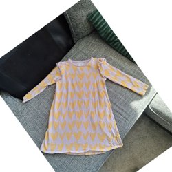 Klänning av okänt märke, väldigt fint skick, knappt använd, tyvärr ett par väldigt små färgfläckar, se bild 4. Storlek 110.