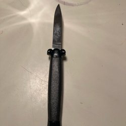 Fjäderbelagd, tryck på sidan med fingret på stålet och den går lättare upp