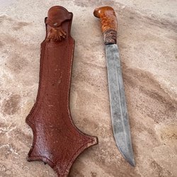 Handgjord same kniv med fodral (slida). Kniven är använd men är i gott skick.