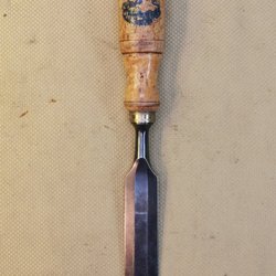 Samekniven mäter 197mm,varav blad 97mm. Signatur finns, men jag kan inte riktigt tyda den. Ligger fint i handen, så en bra brukskniv