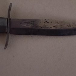 Äldre morakniv med ett graverat blad, dock så slitet att jag ej kan tyda gravyren.
