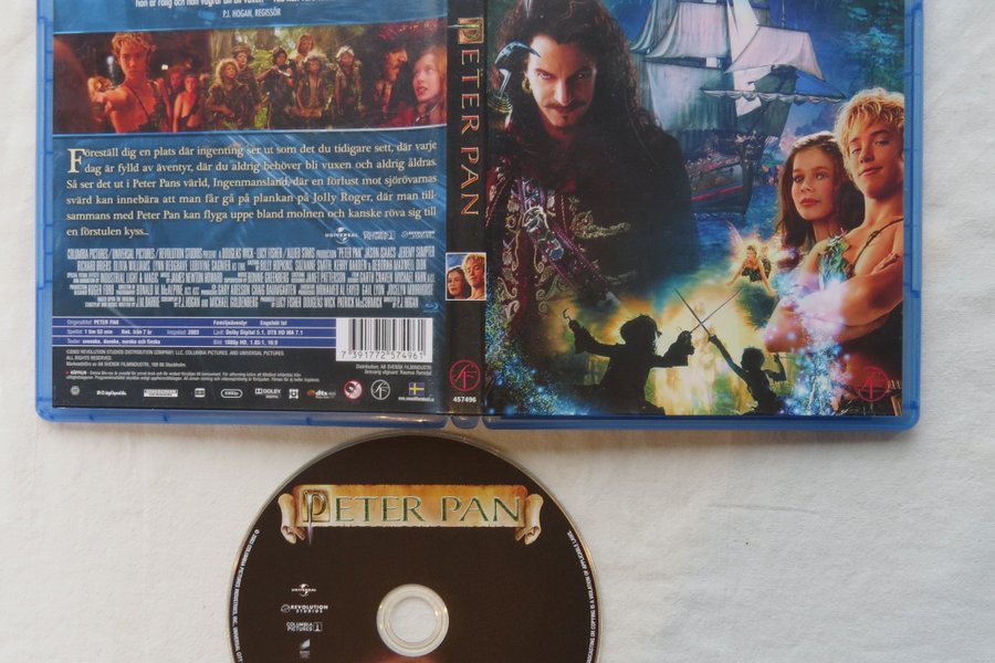 Blu-ray-utgåva av "Peter Pan" från 2003. Filmen har en speltid på 1 timme och 53 minuter. Ljudspår är på engelska med Dolby Digital 5.1 och DTS HD MA 7.1. Textningsalternativ inkluderar svenska, danska, norska och finska. Bildformatet är 1080p HD, 1.85:1, 16:9. Rekommenderad ålder är från 7 år.