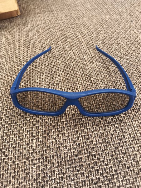 Ett par blåa glasögon.