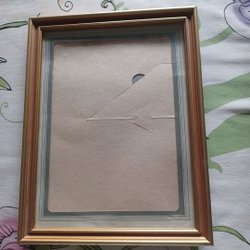 En beige fotoram som passar perfekt för att visa upp dina favoritbilder. Den har ett stöd på baksidan så att den kan stå på en plan yta.