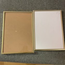 Två vita ramar. Perfekt för att rama in dina favoritbilder eller konstverk. Nästan nya och i perfekt skick. Den ena ramen kan ställas upp. 21×30 cm.