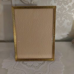 En rektangulär guldfärgad inredningsdetalj. Den har dekorativa detaljer med ett pärlmönster längs innerkanten. Mått 38x32 cm.